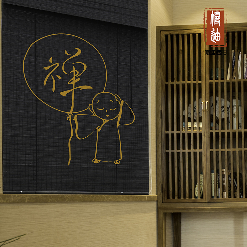 Printing meditation of golden lotus bamboo curtain curtain Buddha shading decorated tatami medium - Japanese - style painting curtain