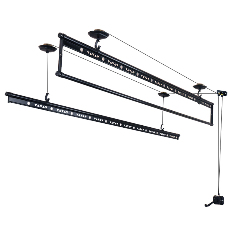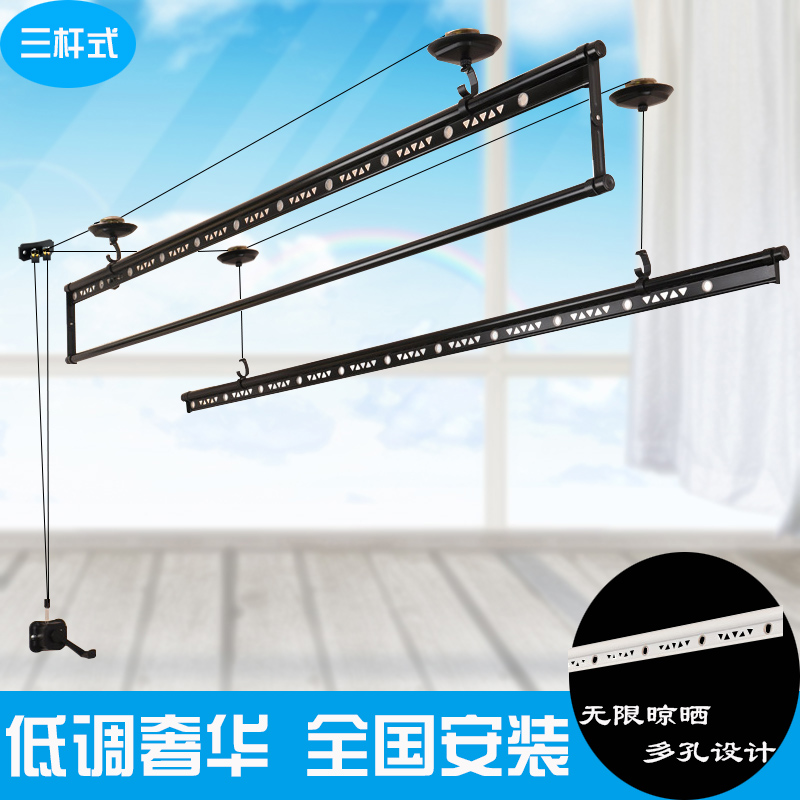 Direct sales indoor balcony lifting clothes hanger double three-pole hand-cranked automatic clothes drying quilt black and white cool pole bag installation