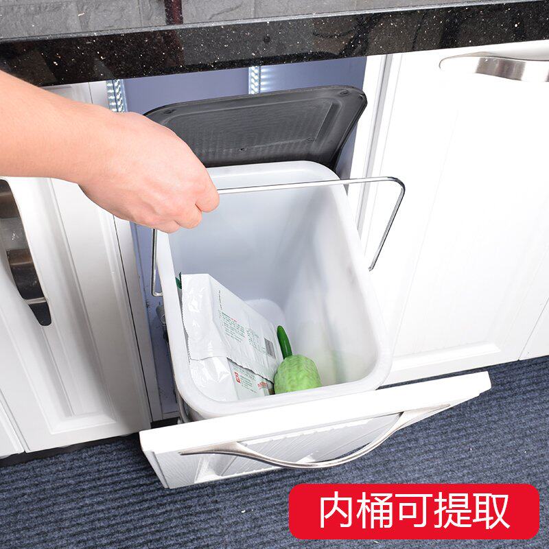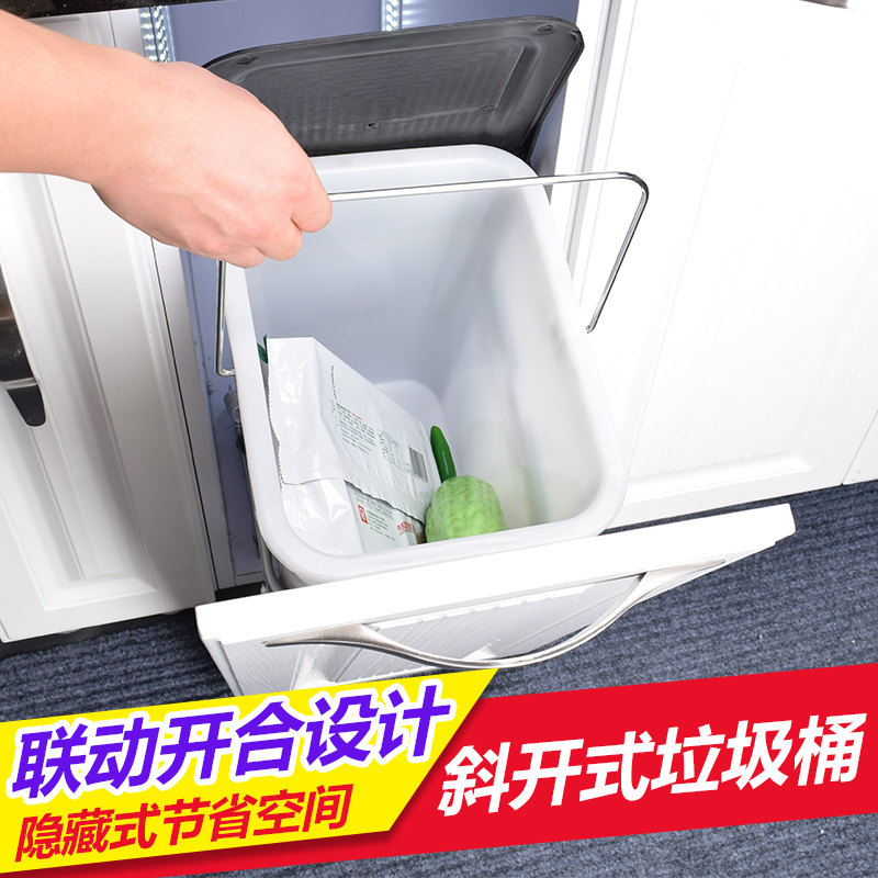 Kitchen integrated cabinet Oblique open trash can with lid Plastic trash can cabinet can be connected to the door Square integrated cabinet hardware storage