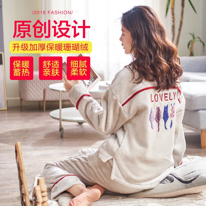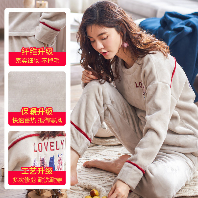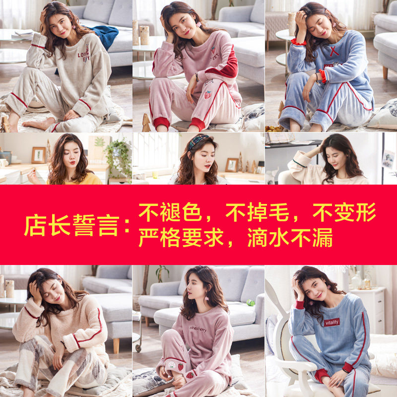 Pajamas Woman Autumn Winter Cute Suit Coral Suede Thickened winter Korean version Han version Long sleeves Furry Warm Family Clothing