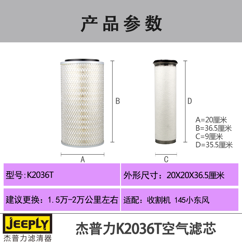 Jeppley K2036 air filter Air Filter Adaptive Harvest 145 small Dongfeng van air filter