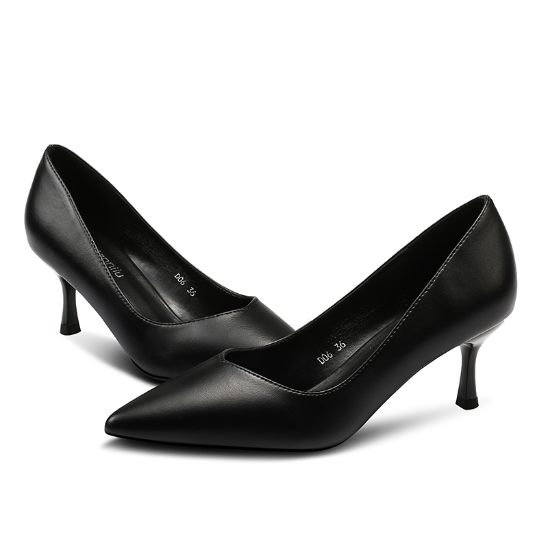 Hotel Work Shoes Woman Black High Heel Shoe Thin Heel Workwear Pointed Low Heel Soft Leather Small Code Comfort To Work Single Shoes