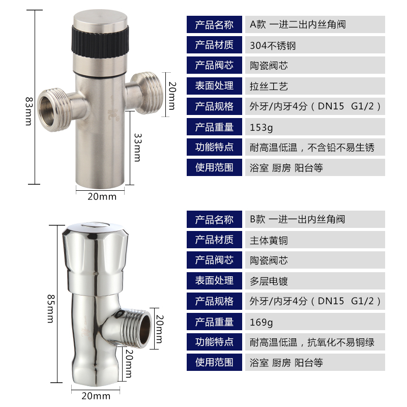 Inner silk angle valve 4 divided into full copper triangular valve triple switch on hot and cold progress 2 out of water distributor stainless steel internal tooth switch