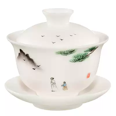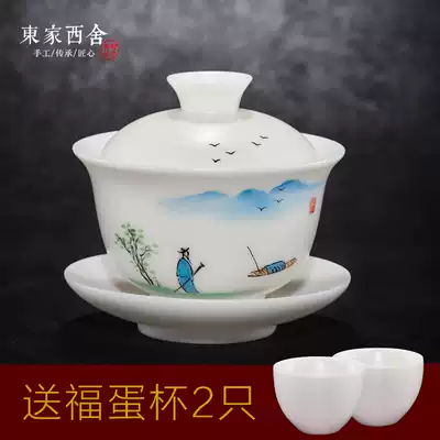 Dongjia Dehua White porcelain Suiyaki hand-painted cover bowl Teacup Kung Fu tea set Fine landscape Sancai cover bowl sheep fat jade porcelain