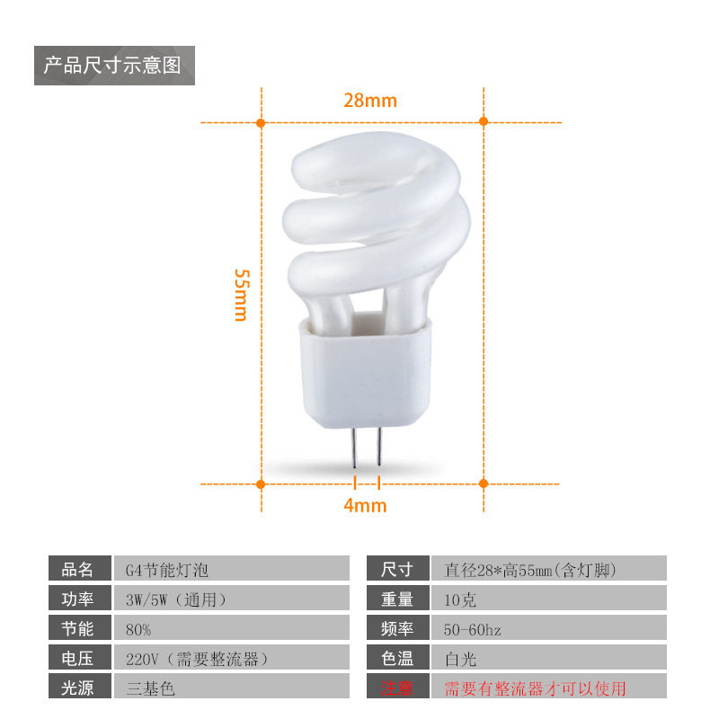Mirror headlight bulb G4 energy-saving bulb 5W two-pin pin energy-saving lamp beads Aisle lamp 3W small spiral energy-saving lamp