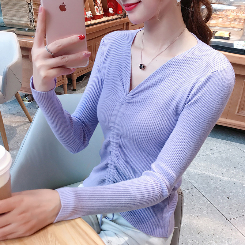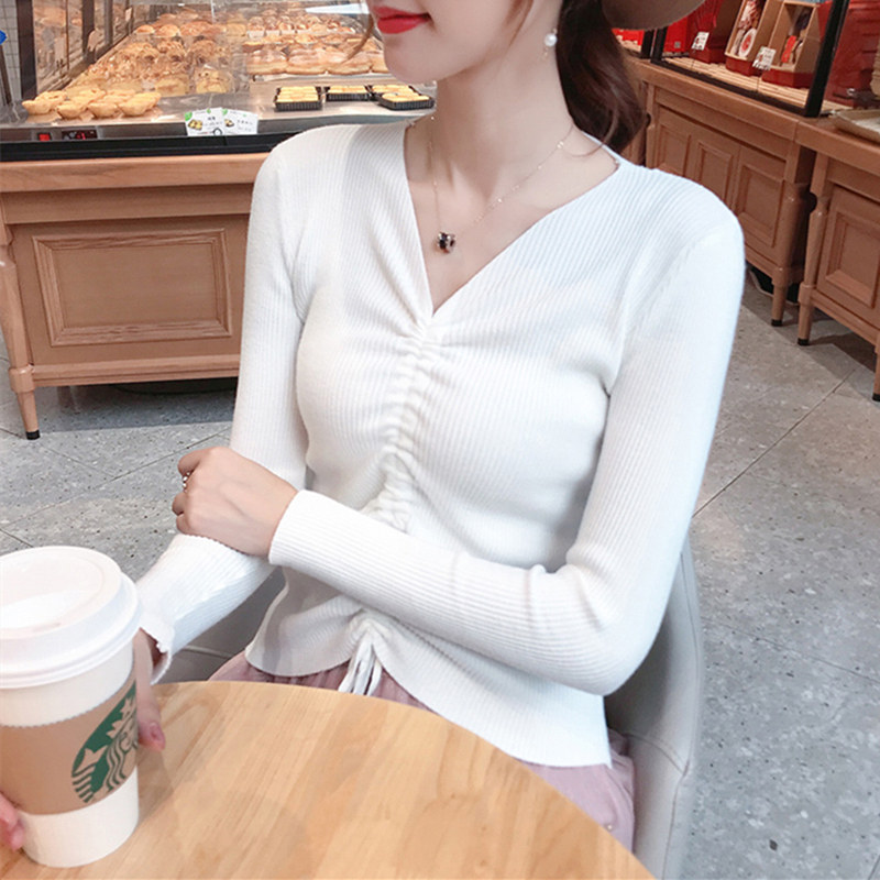 Spring and Autumn New Hundred Patch V-collar Sweater Han Edition Tight Sleeve Sleeve Knitting Sweater Winter
