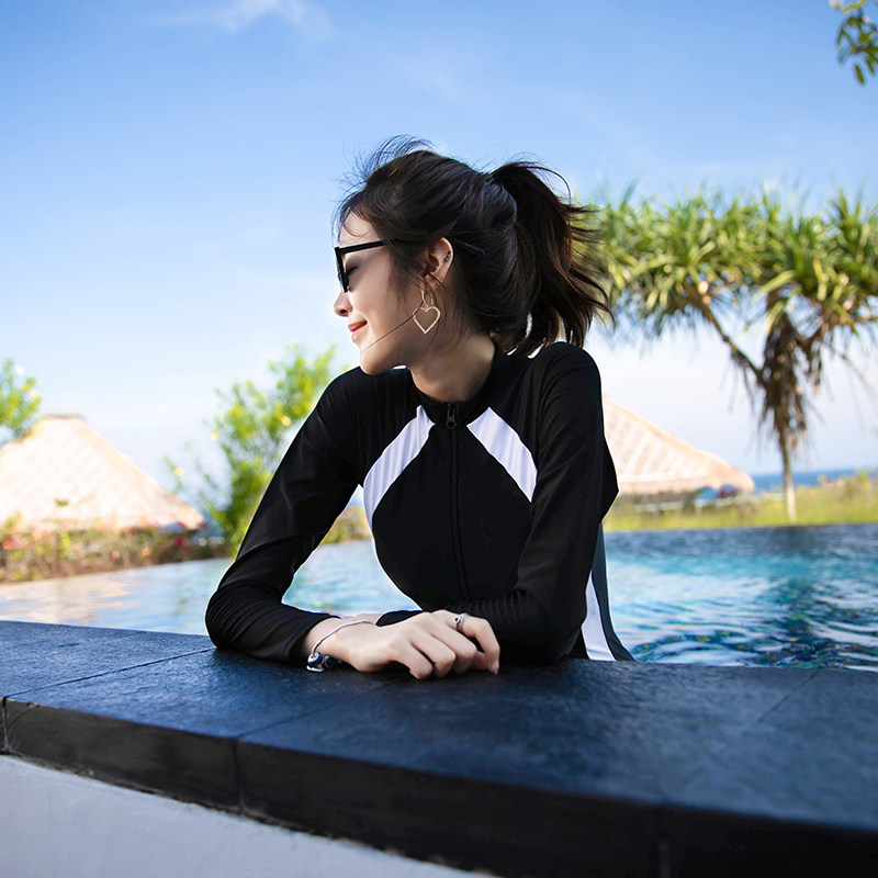 Swimsuit women's summer sunscreen 2021 new conservative one-piece flat-angle belly cover thin long sleeve wetsuit seaside swimming suit