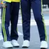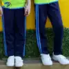 Primary and secondary school students uniform pants pants Navy blue dark blue Men's and women's children's sports pants two bar school pants white bar green edge