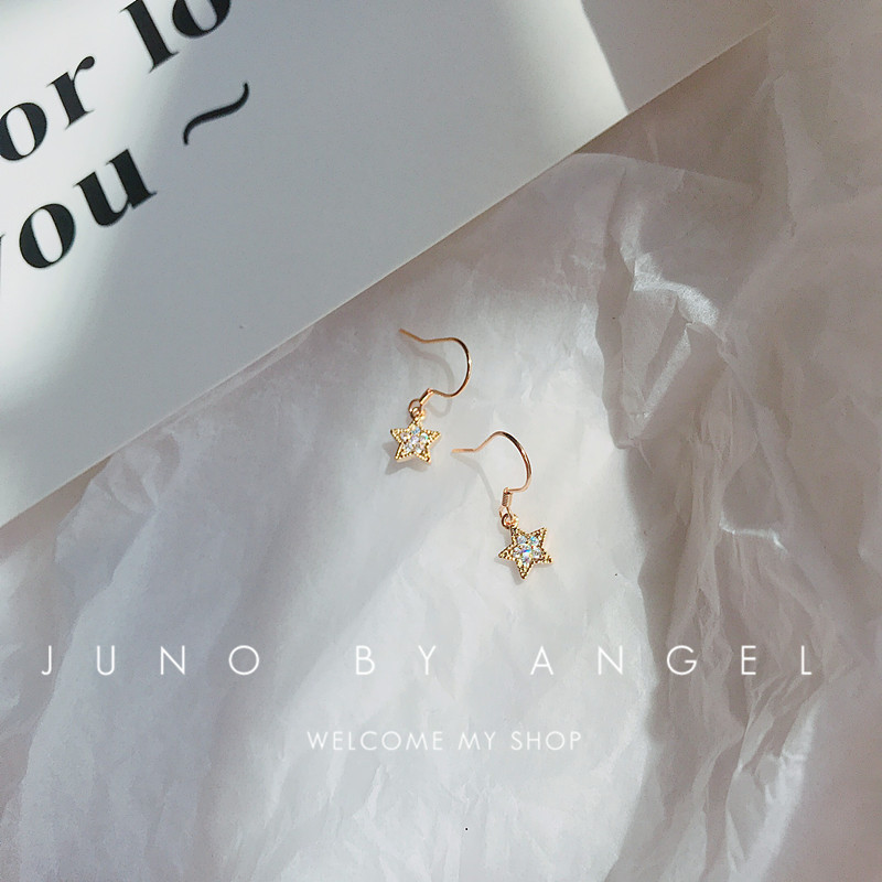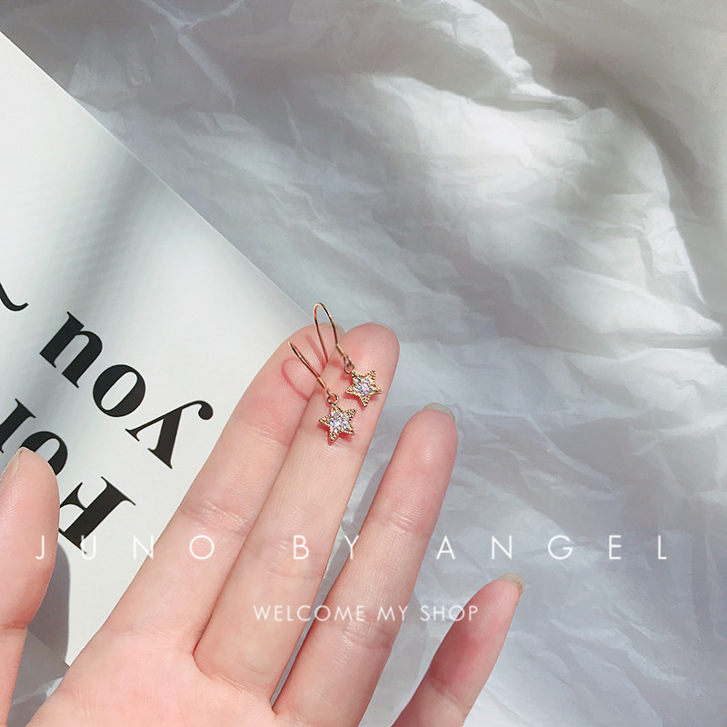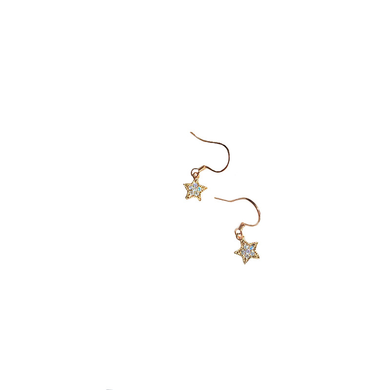 14K Gold Small Earrings Exquisite Diamond-set Zircon Shining Star Simple Pentagram Earrings Korean Sterling Silver Women