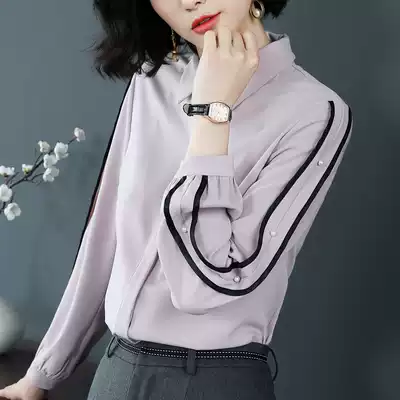 Pink lantern sleeve shirt women's long-sleeved autumn professional shirt fashion temperament loose women bottoming plus velvet top