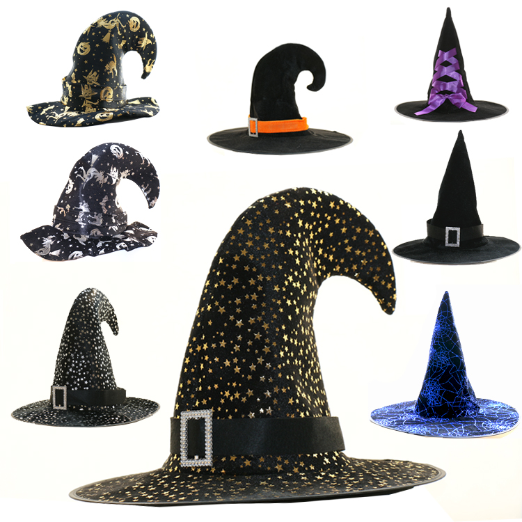 Red Rose Witch Hat Black Rose Witch Hat Purple Rose Witch Hat Pink Satin with witch hat yellow satin with witch hat green satin with witch hat purple satin with witch hat thickened golden bend top pumpkin witch hat