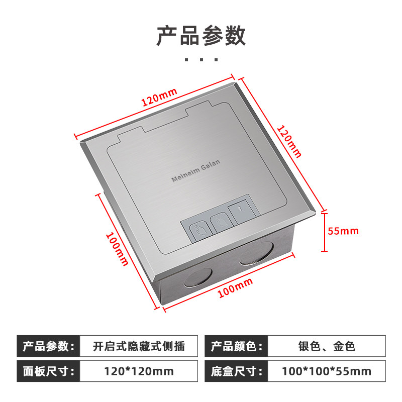 Meilan 120 all-copper waterproof ground socket stainless steel power floor skewer silver side plug socket invisible living room
