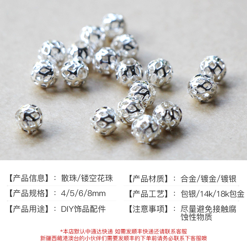 14K color shelf gold hollow ball ball bar is not easy to fade hand - made string of diy accessories