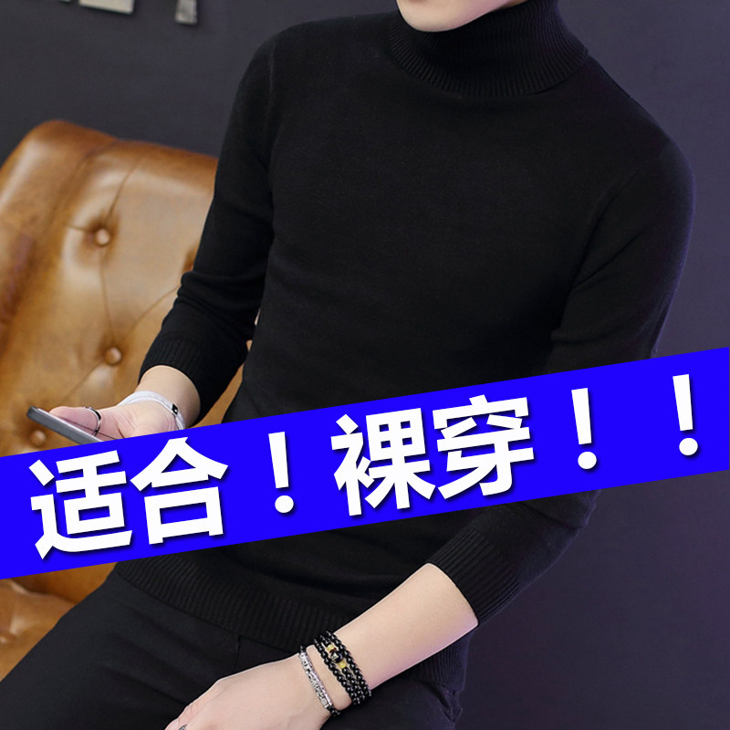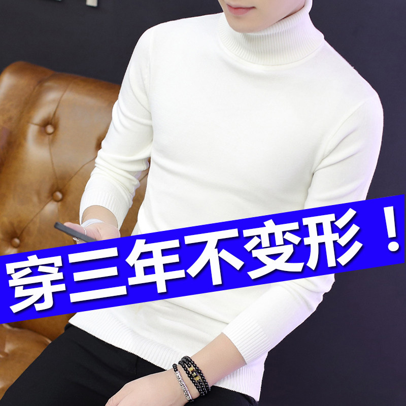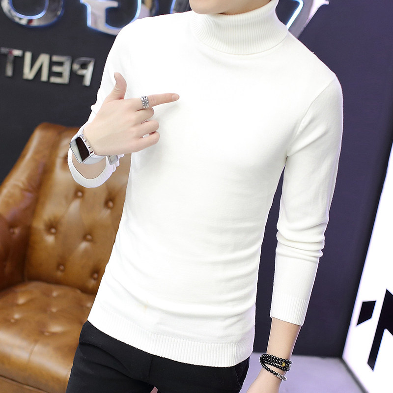 Fall and Winter White Tall-collar Sweater Men's Korean Edition Line Clothes Pure Color and Thick Knitted Blade Clothes