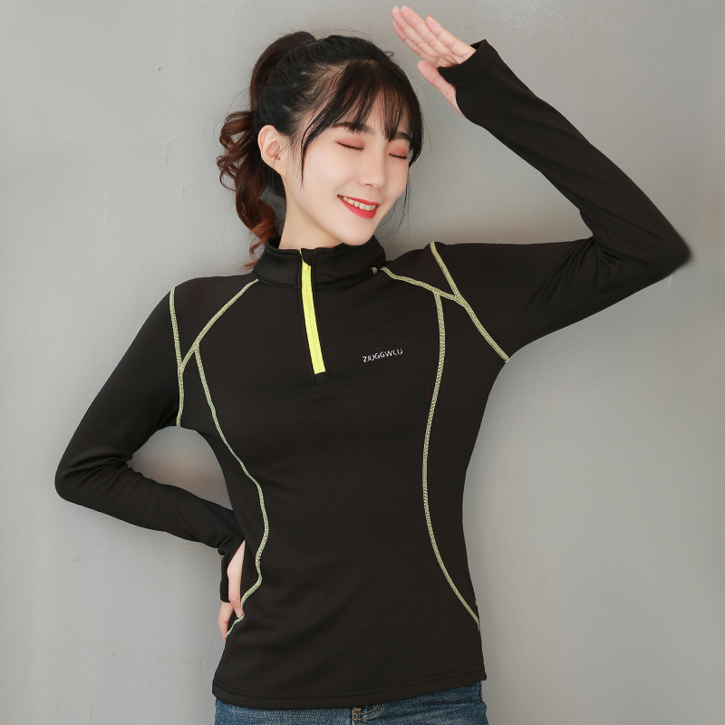 Autumn and winter women's outdoor velvet warm long-sleeved thin velvet quick-drying clothes High elastic quick-drying sports running fitness T-shirt