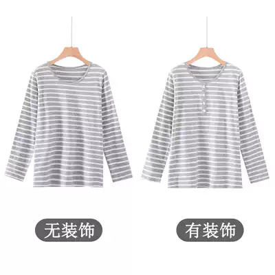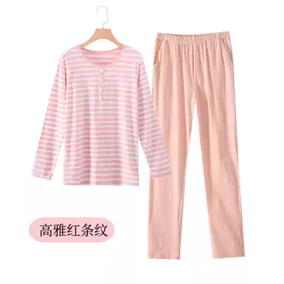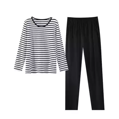 Pure cotton women's long-sleeved trousers two-piece suit striped loose large size thin autumn and winter home clothes can be worn outside pajamas