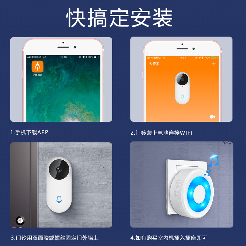 Smart visual doorbell wireless home wifi mobile phone remote monitoring intercom call video camera frequency free punching