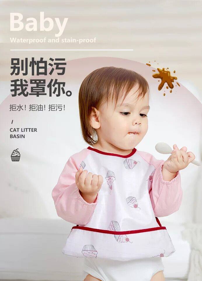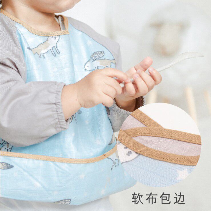 Newborn coveralls long-sleeved reverse dressing infants and young children waterproof eating clothes men and women baby painting clothes breathable cotton