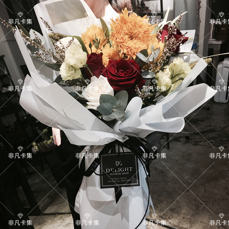 Simple and creative black and white Korean flower shop hanging card Flower card Eternal flower maintenance card Flower shop promotional card Flower basket hanging card