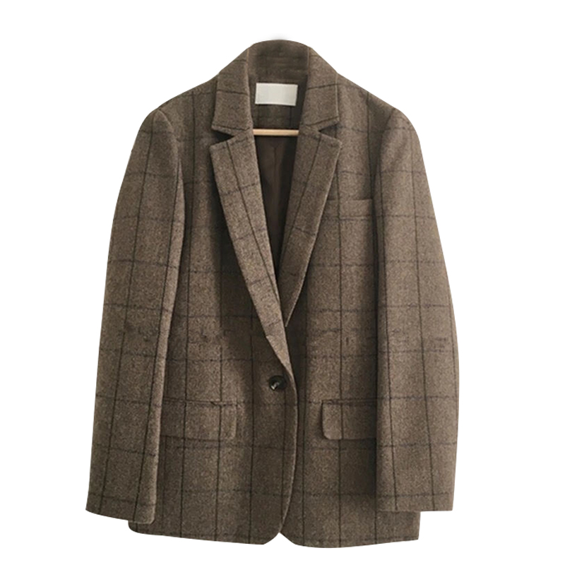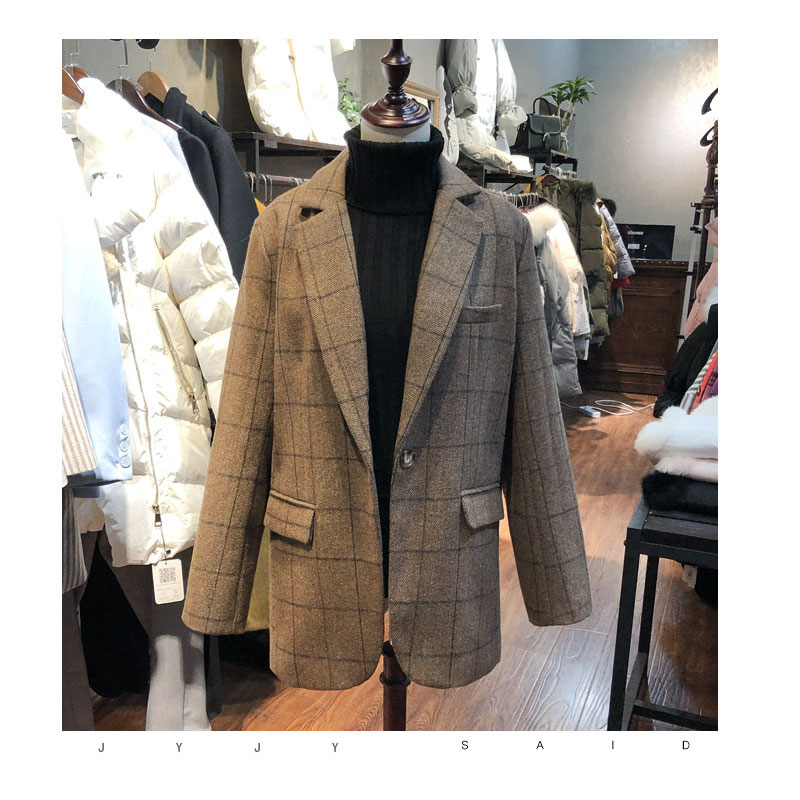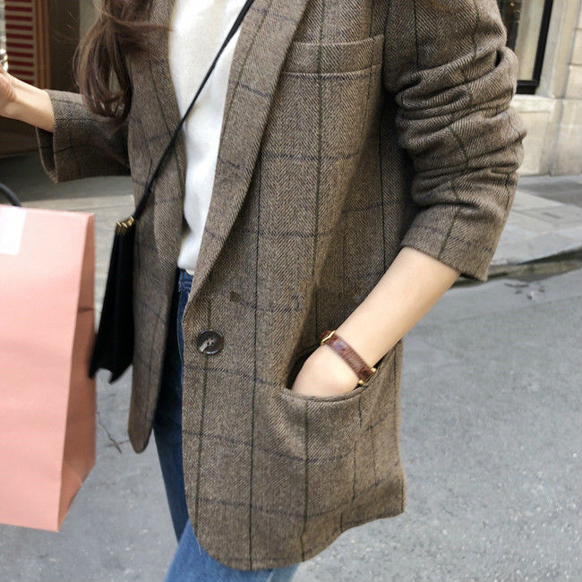 South Korea's Dongdaemun 2022 Chunqiu's new retro loose display slim plaid short coat chic fur, and woman in a small suit