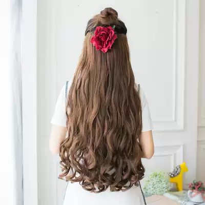 Wig female long curly hair shape big wave half head Net red straight hair cute temperament one piece of hair clip