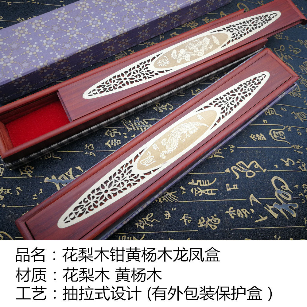 Wooden dragon and phoenix box Tire hair pen collection box Rosewood dragon and phoenix box Acrylic pen holder Purple sandalwood high-grade box High-grade shock absorption fabric pen box