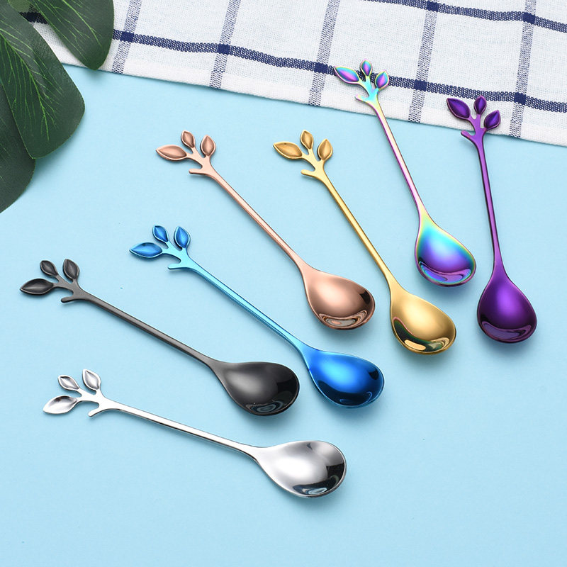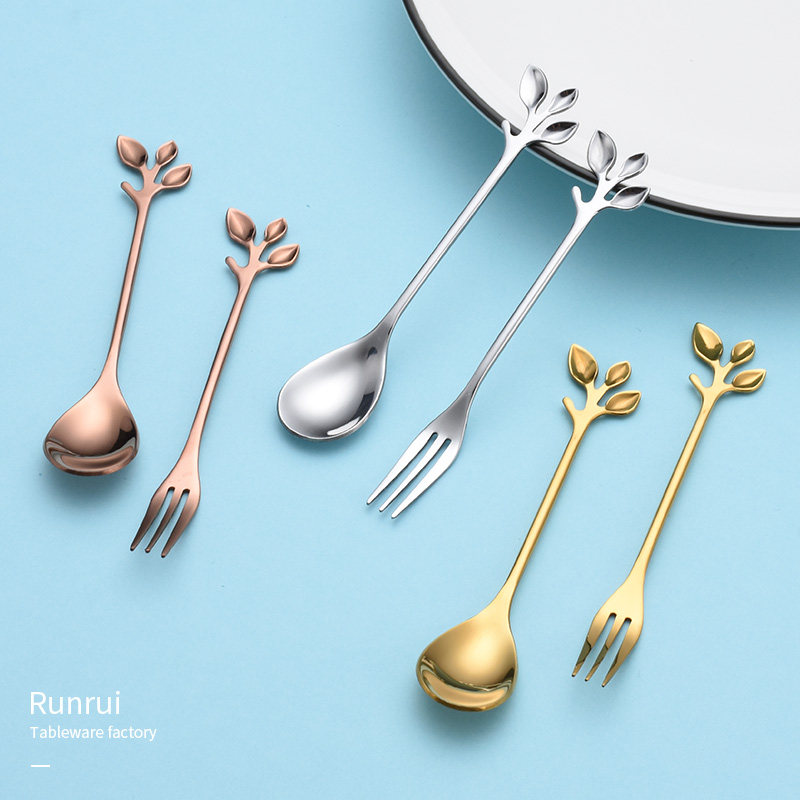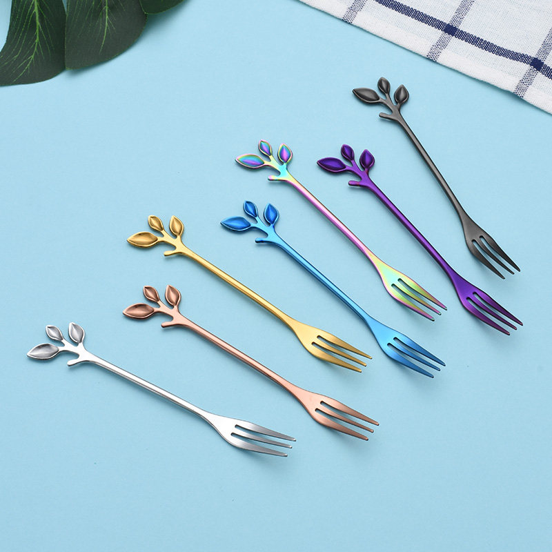 Stainless steel fruit fork Creative tree-shaped cute fruit label fruit plug household dessert coffee spoon