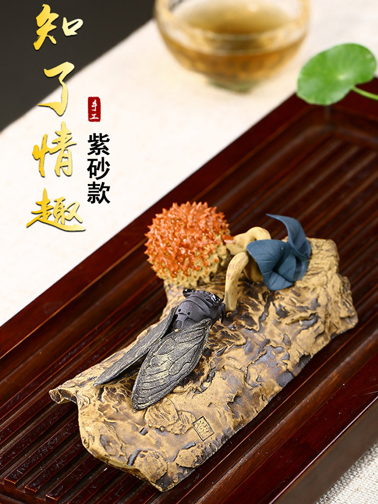 Zisha tea pet cicada ornaments simulation bark tea play color changing lychee small golden cicada can raise handicraft fame and fortune