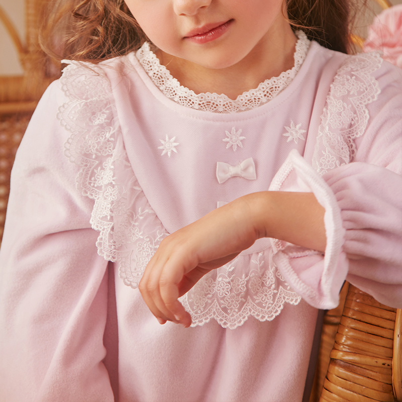 RoseTree girls' flannel nightdress autumn and winter long-sleeved little girl princess coral velvet children's palace pajamas