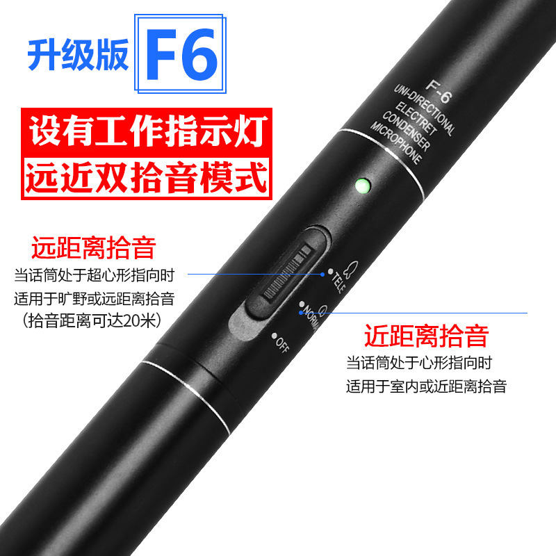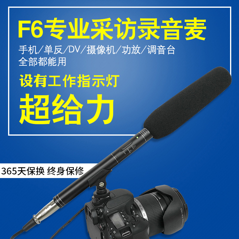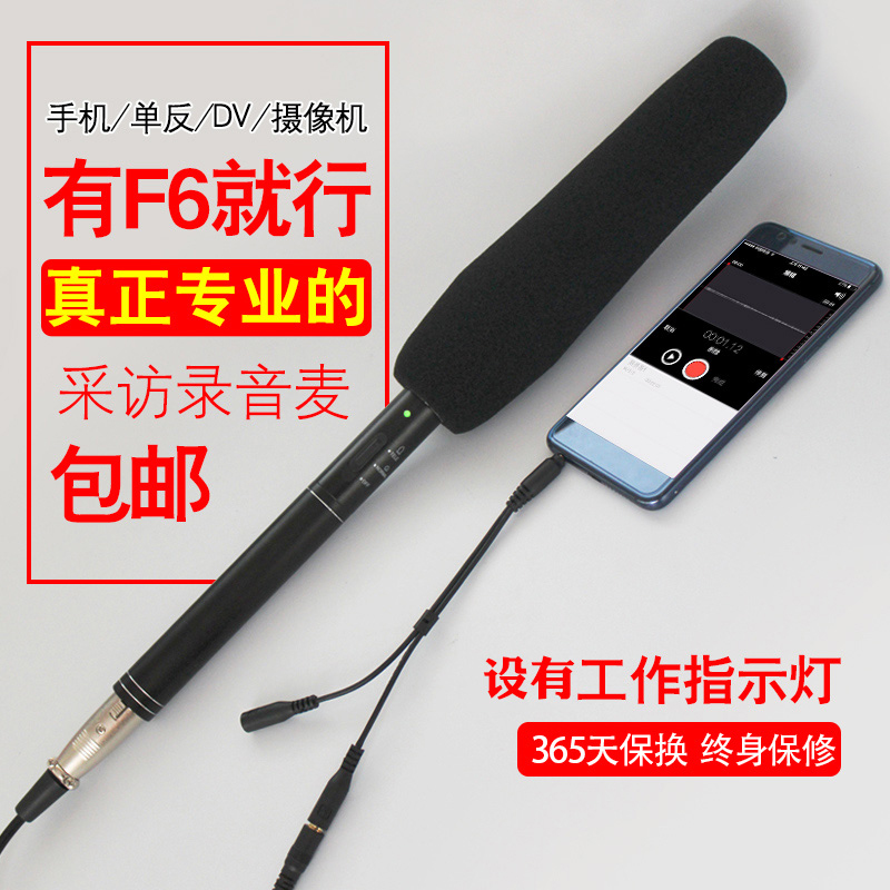 F6 high-end interview microphone movie simultaneous recording interview microphone single-eye mobile phone pickup live broadcast with work light