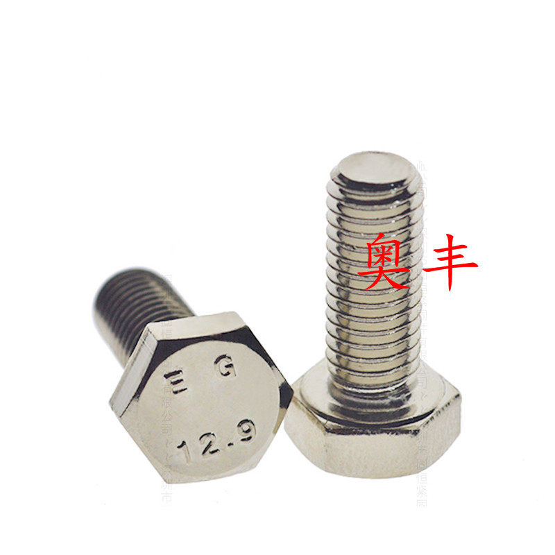 Nickel-plated 12 grade 9 DIN933 full tooth outer hexagonal screw M12*20 25 30-100mm outer hexagonal bolt