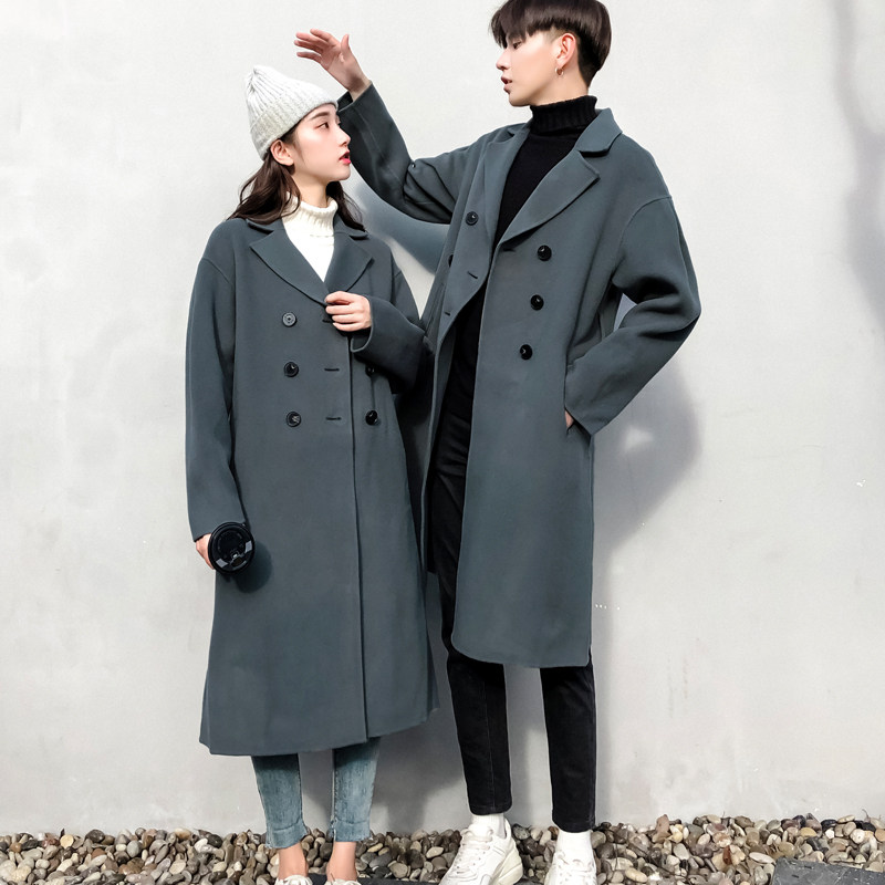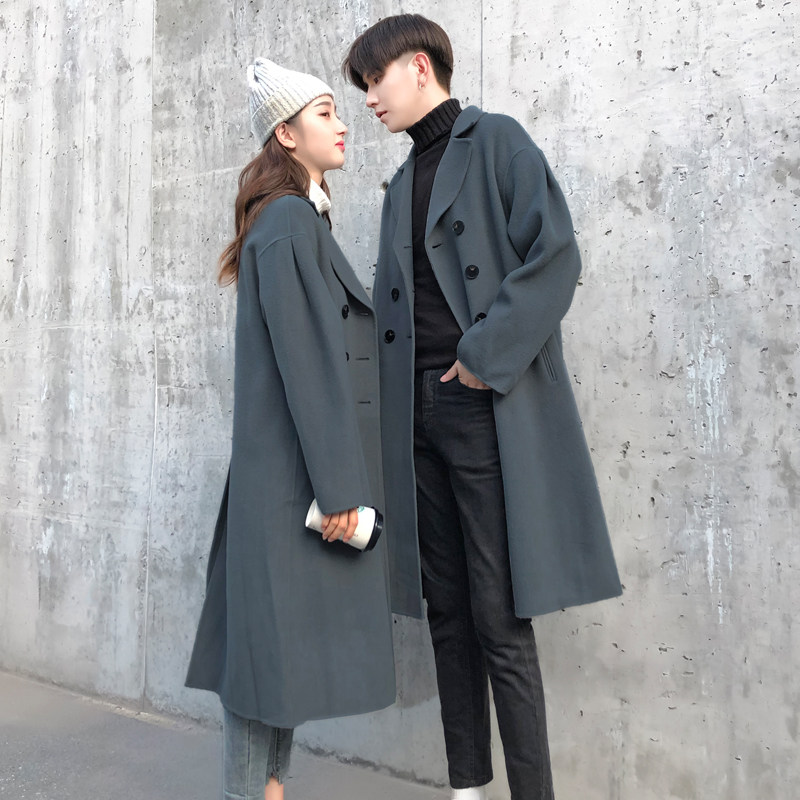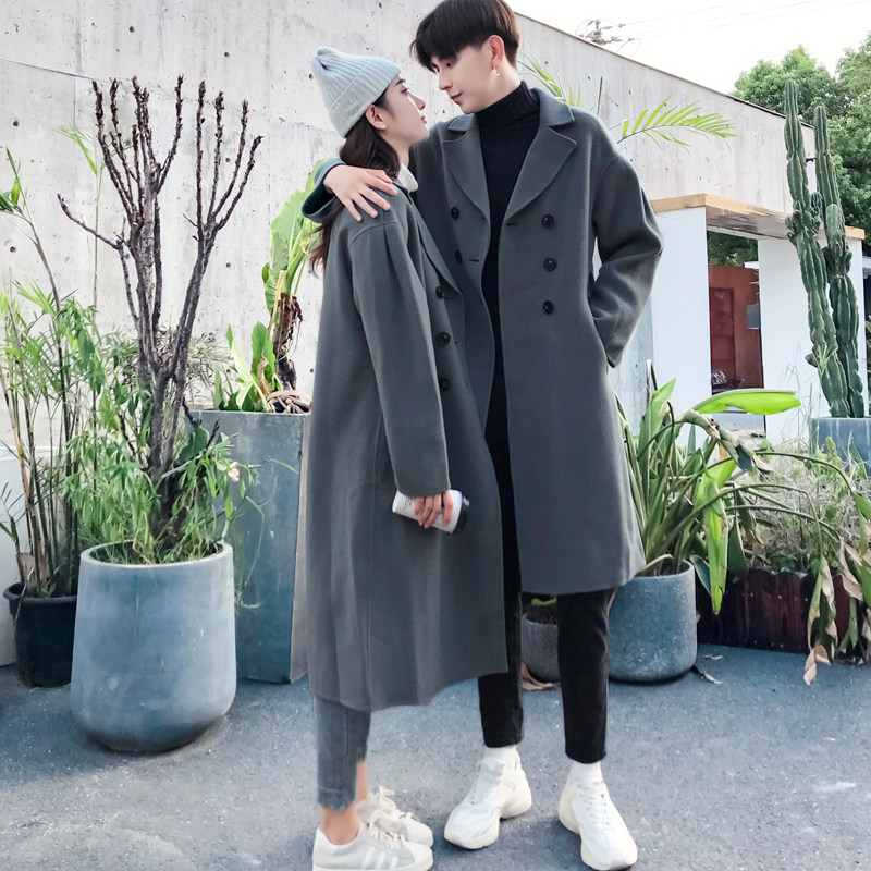 Couple clothing autumn and winter 2021 new medium and long version of the windbreaker men's wool coat Korean version of the jacket niche design sense