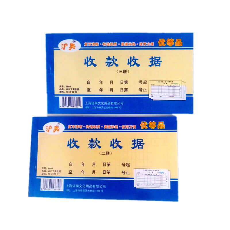 20 copies of the two-part collection receipt 8801 (50 copies of this 40 copies of the two-part collection receipts 8801 (50 copies of this 20 copies of the triple collection receipts 8803 (60 copies of this 40 copies)