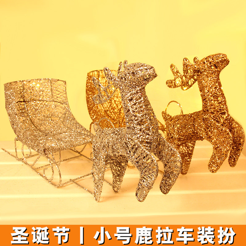 Christmas decorations Wrought iron small deer pull car ornaments Shopping mall Christmas elk scene props Christmas deer pull car