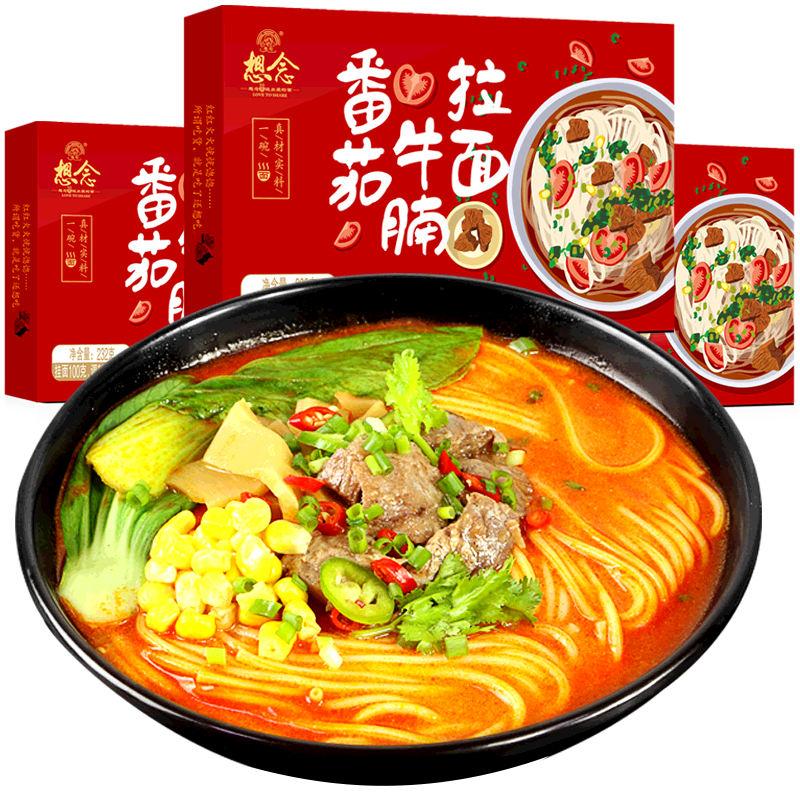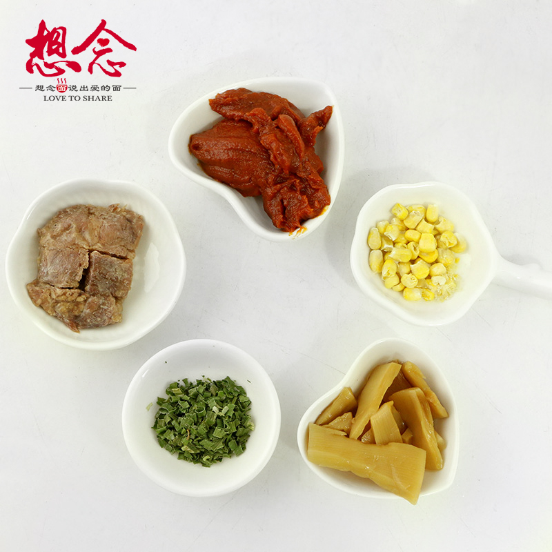 Wheat flour Water Edible salt Tomato soup base package Beef package flavor pay bamboo shoots package shallots package Corn grain package