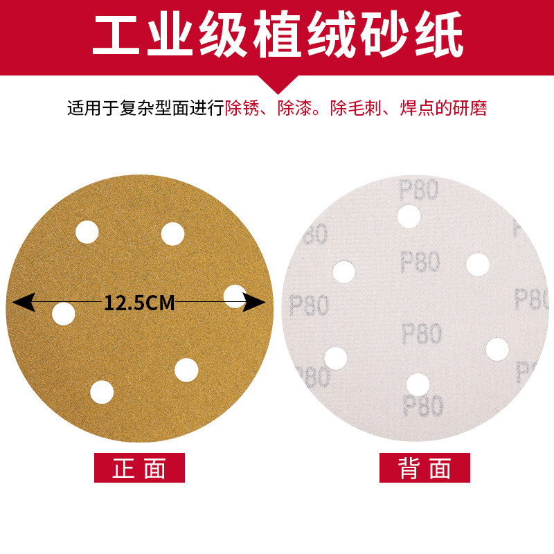 Cemreo di dry frosted paper 5 inch 6 holes disc sandpaper self-adhesive polished sand paper flocking polished sandpaper back suede sandpaper