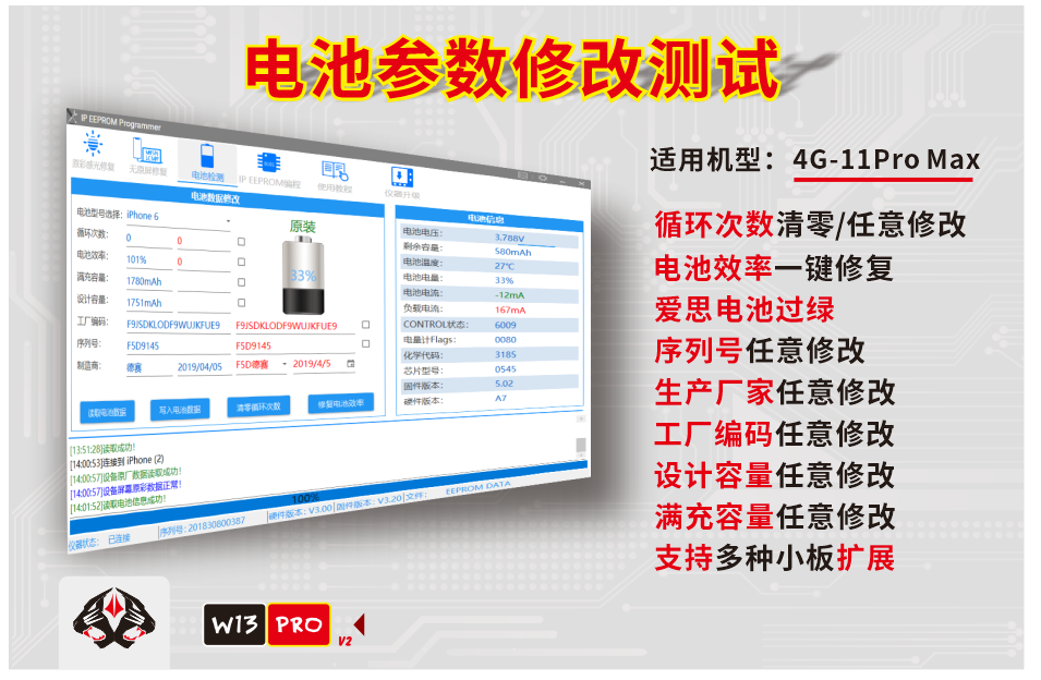 W13PRO Apple XS XSMAX 12PRO screen original color TV pool headphone shake code sheet read and write repair instrument