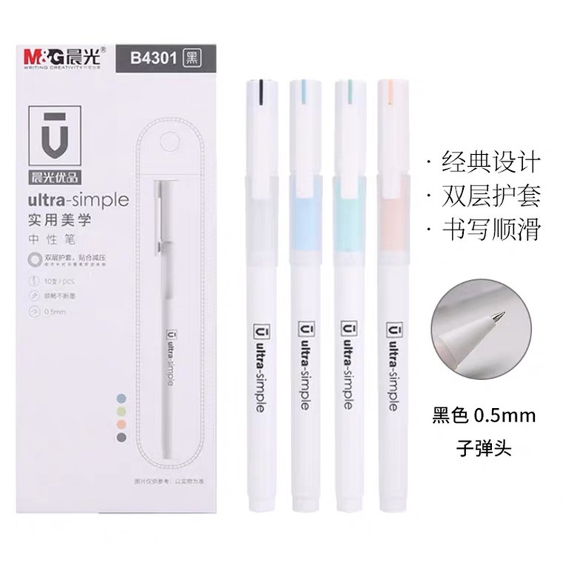 Morning light gel pen Youpin water pen B4301 pull cover carbon black bullet full needle tube 0 5 black blue red color set Simple student exam pen signature pen 7017 refill 7015 refill