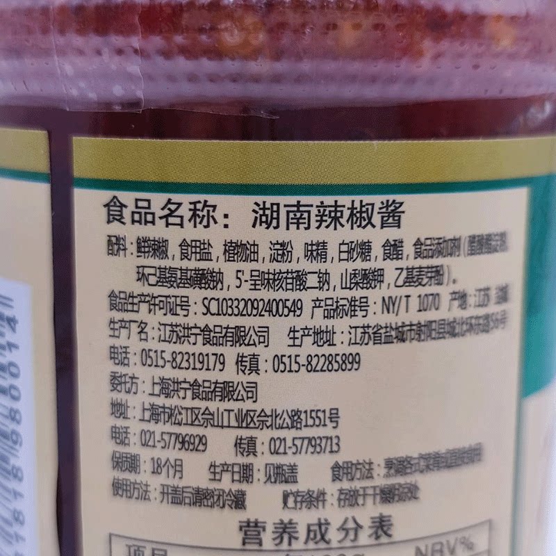 Details of fresh chili salt vegetable oil MSG white sugar See packaging