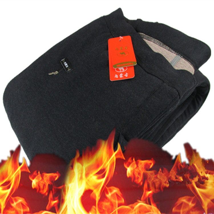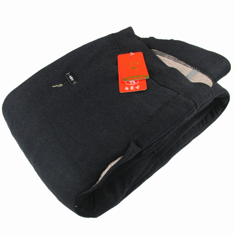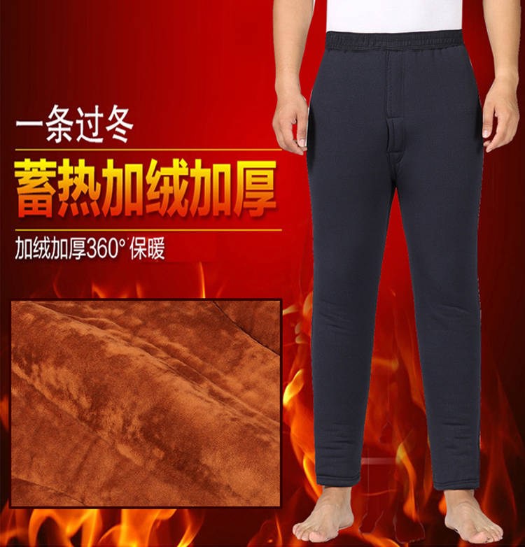 Winter middle-aged and elderly men camel wool cotton pants plus velvet thickened elderly loose plus size thermal pants high waist cold elasticity