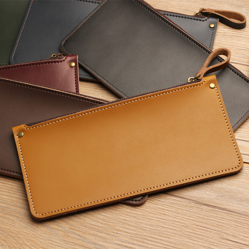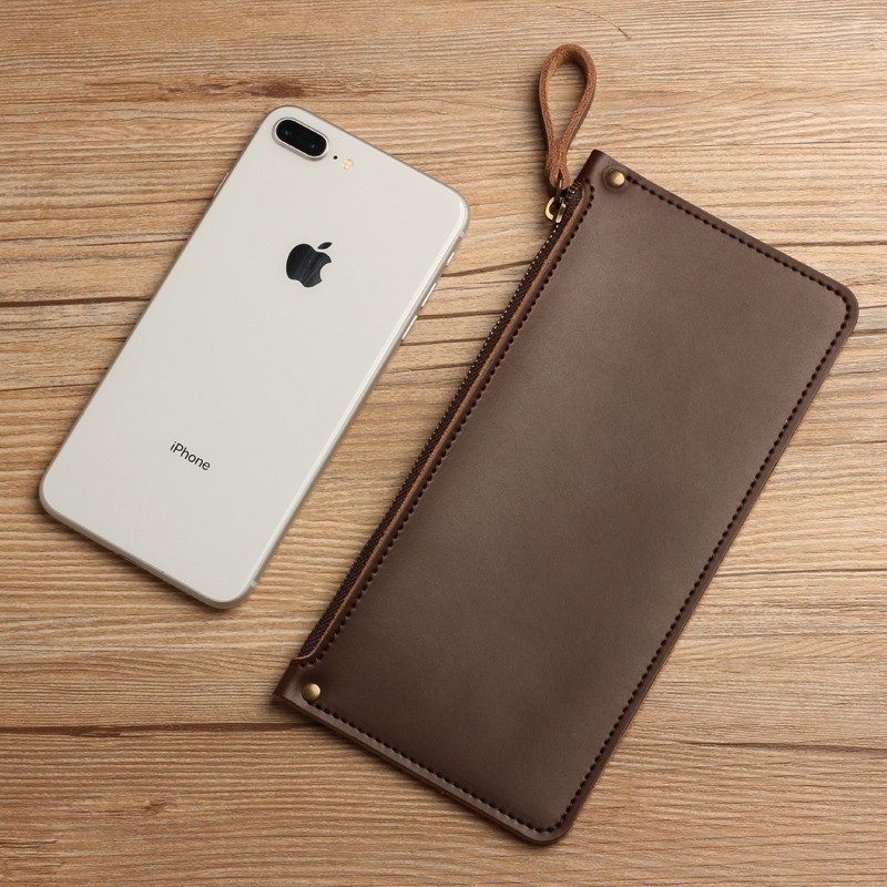 Laxs Wallet Man Style Long Version Cow Leather Mobile Phone Bag Mad Horse Hand Multifunction Pull Chain Retro Genuine Leather Money Clip Card Clip