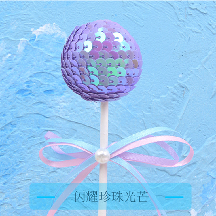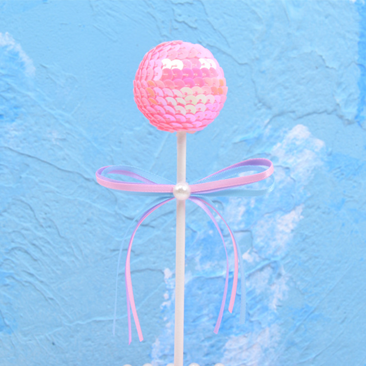 Pink girl heart bright ball sequin ball bow birthday cake decoration card party dessert table supplies