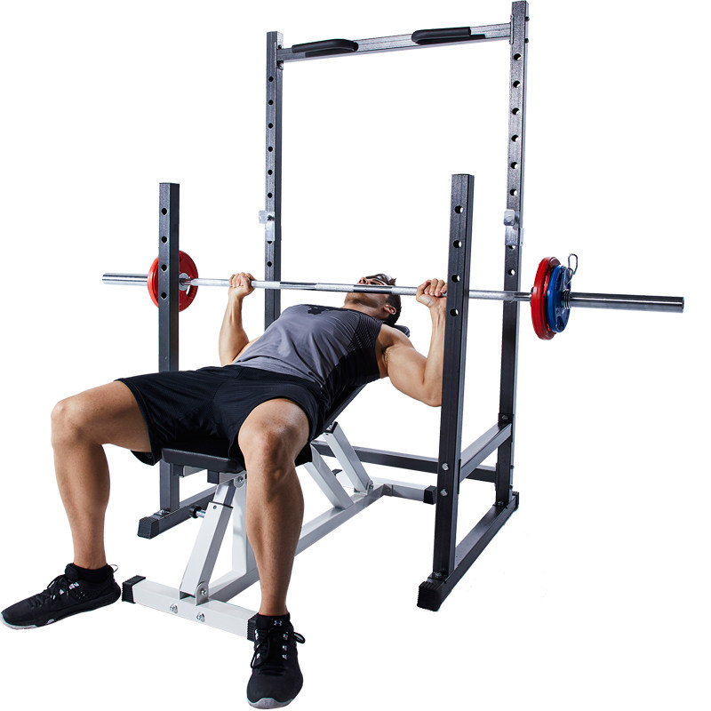 Half-frame squat rack Barbell set Bench press rack Home fitness equipment weightlifting bed barbell rack Pull-up device