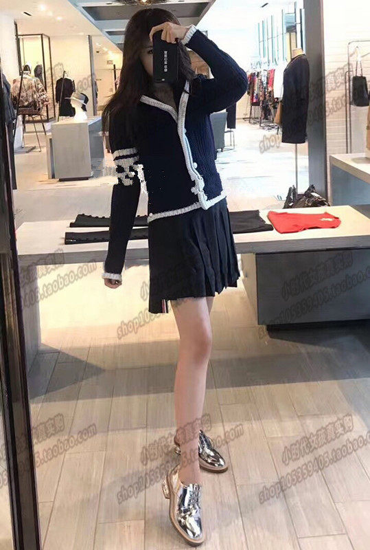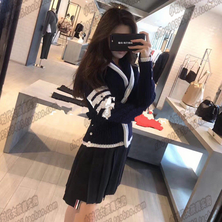 (small times France) Thom Browne18SS autumn winter tb wool cardiovert jacket thickened V-led knit cardiovert jacket