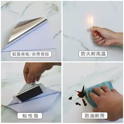 Thickened kitchen powder room imitation marble wallpaper wall sticker oil-proof waterproof self-adhesive tile integral cabinet stove surface