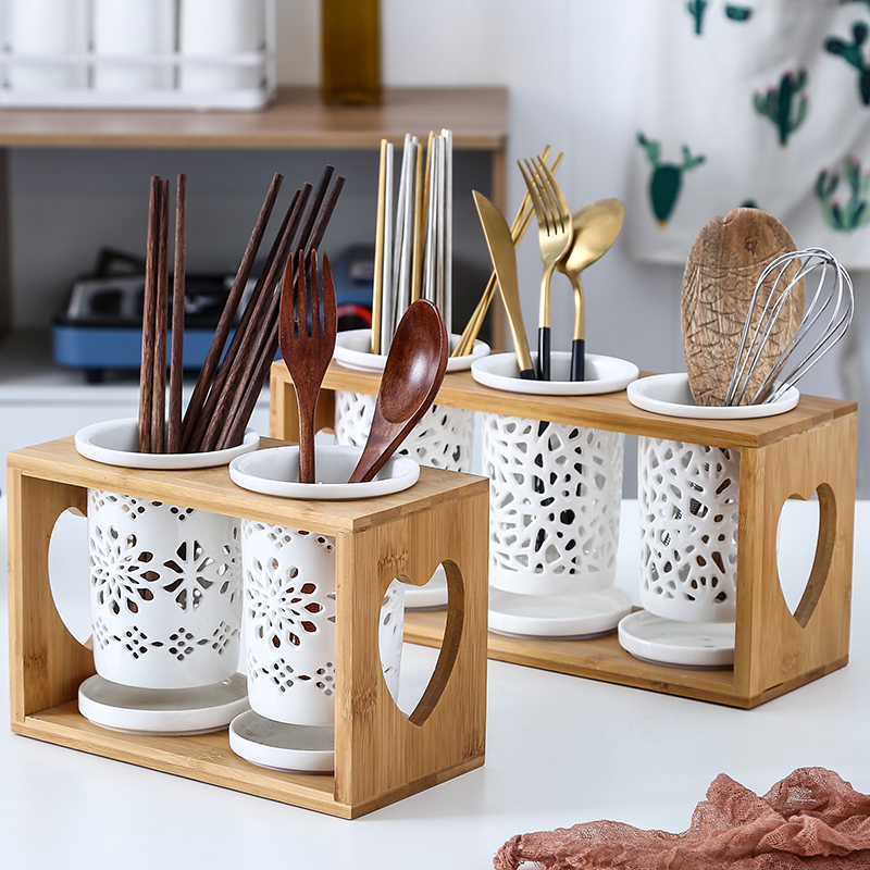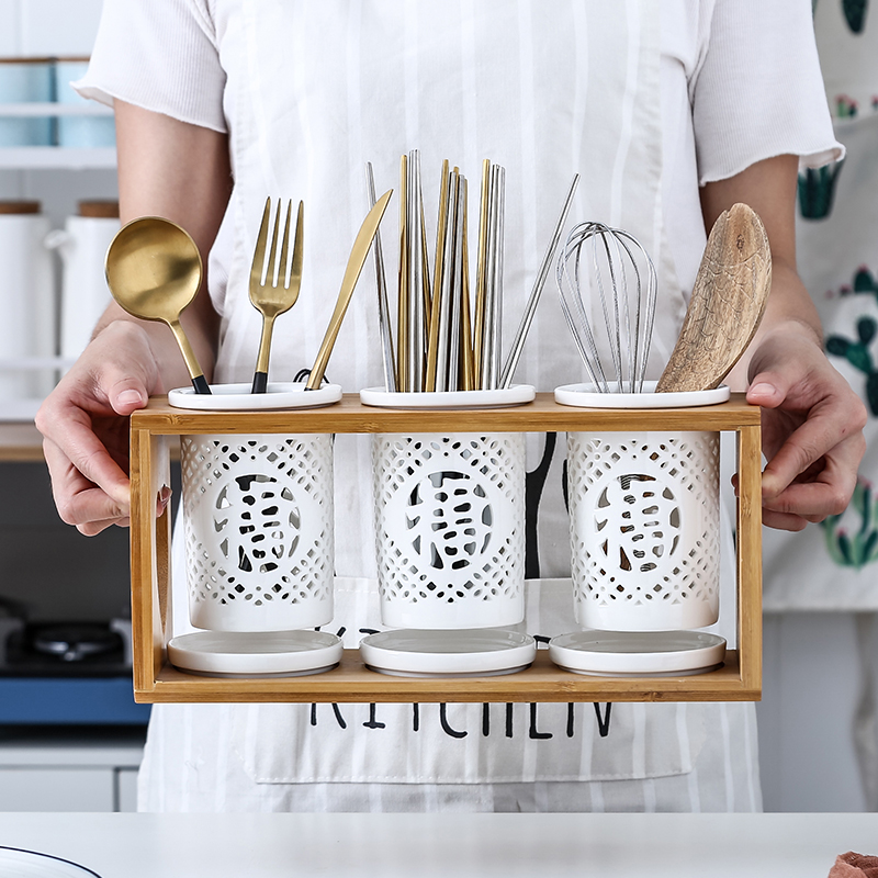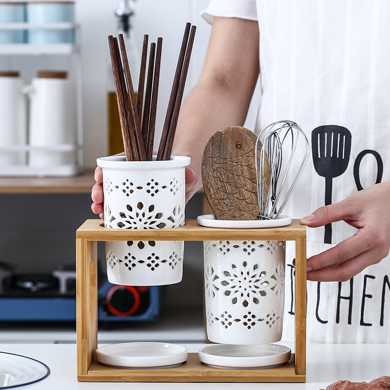 Ceramic Chopstick Cylinder Domestic Drain Double Triple Chopstick Barrel Chopsticks barrel chopstick case Han style containing shelf Chopstick Cage