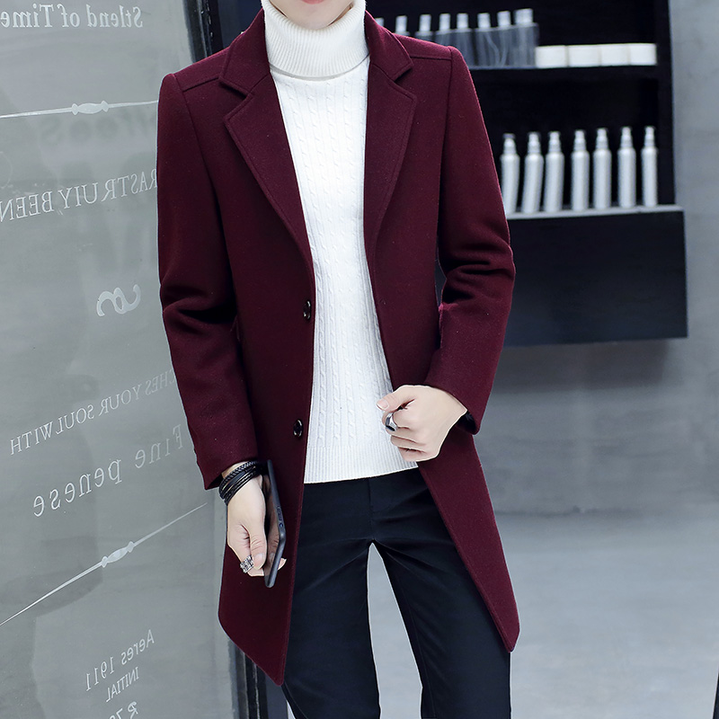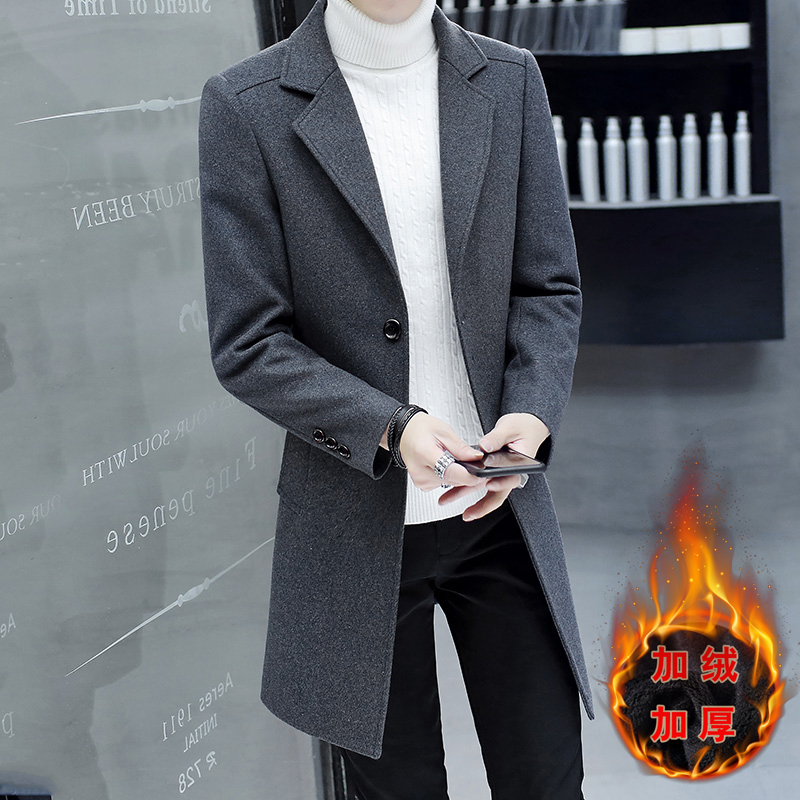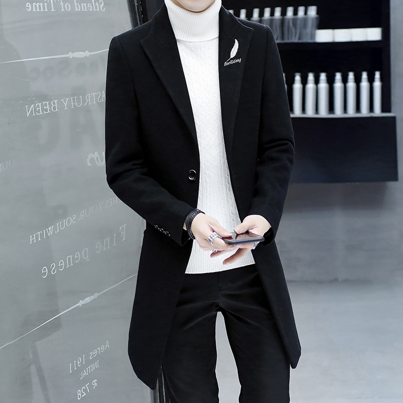 Autumn and winter woolen coat men's mid-length version Korean trend woolen coat men's windbreaker British suit