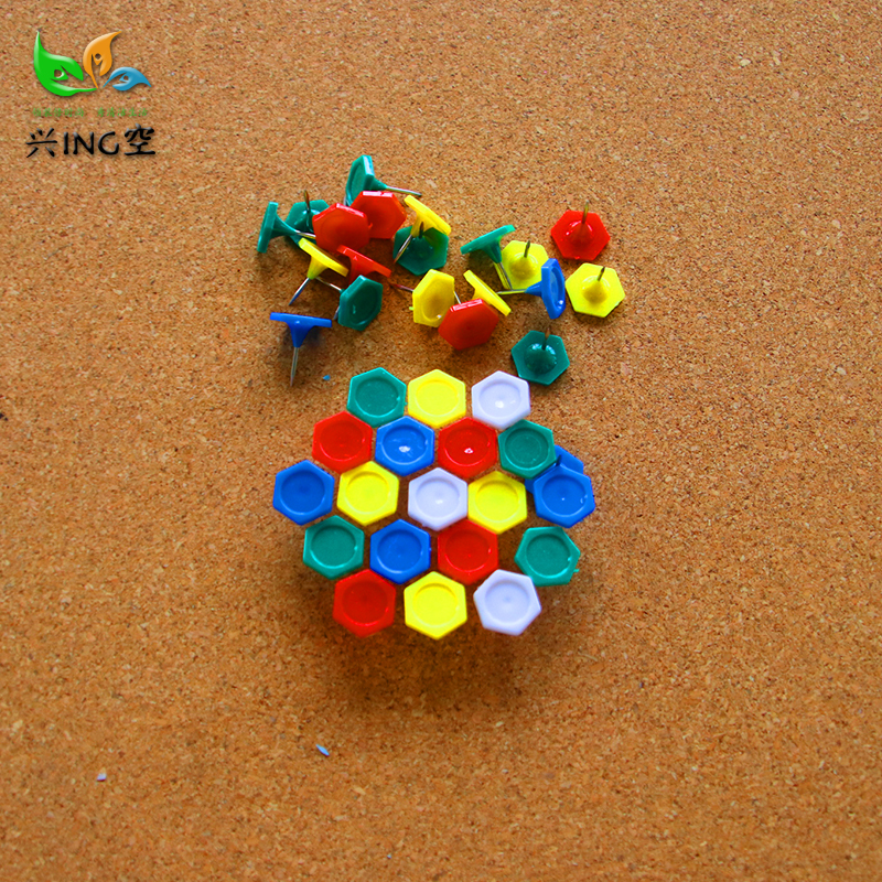 Creative Hexagon Colored Drawing Nails Press Stud Cork Studs of cork Cork Drawings 40 pieces of Staple Cartoon