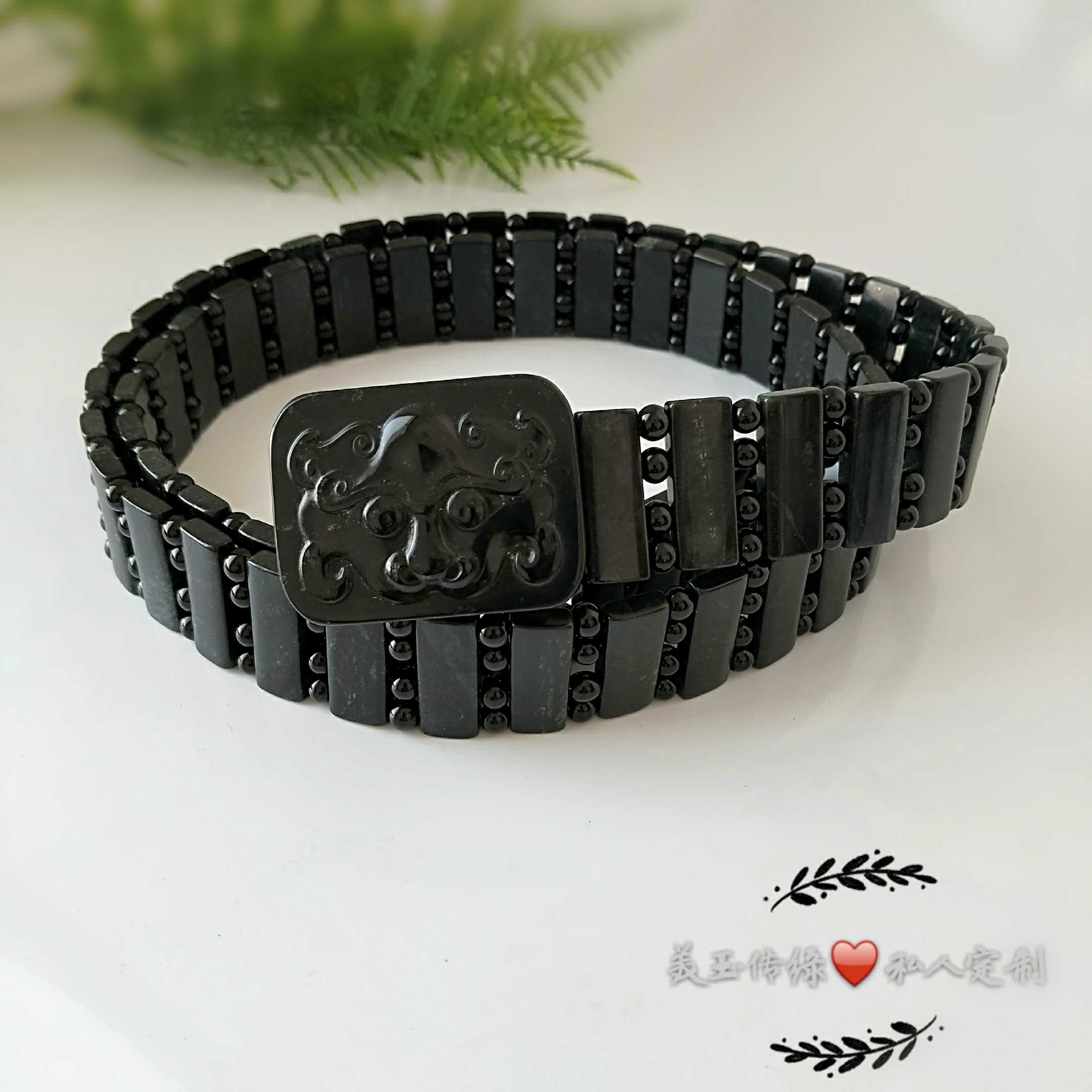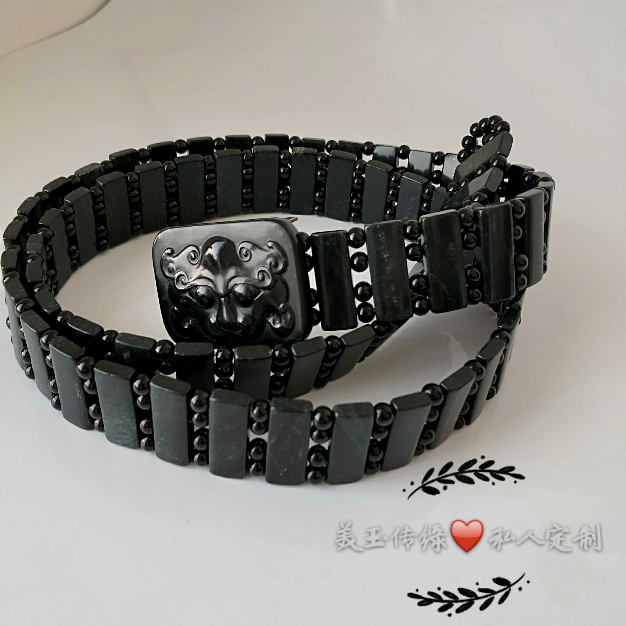 Xinjiang live magnetic ink jade belt Dark green jade men's belt Jade belt can be customized