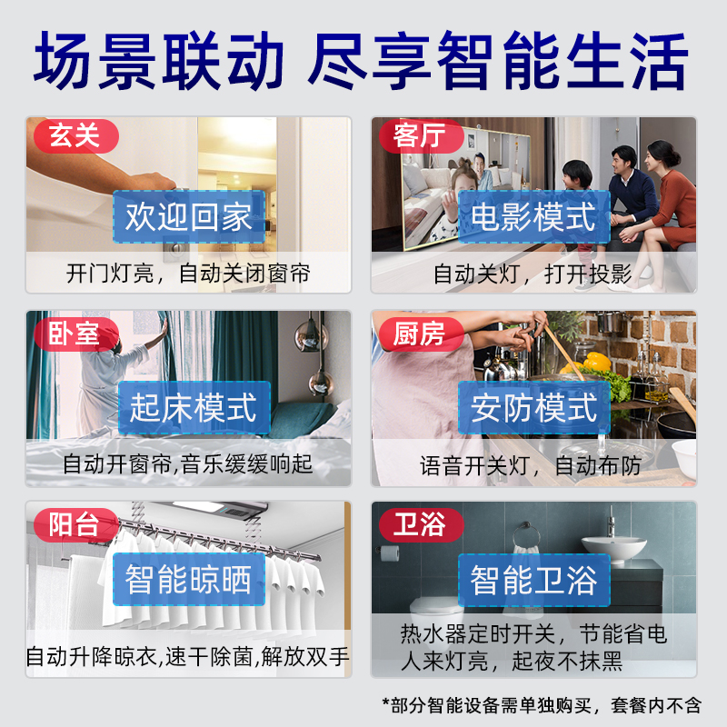 Smart Home Device Experience Package Experience Package Two Rooms One Hall Base Package Two Rooms One Hall Luxury Package (With Electric Curtains) Three Rooms Two Hall Base Package Three Rooms Two Hall Luxury Packages With Electric Curtains (With Electric Curtains)
